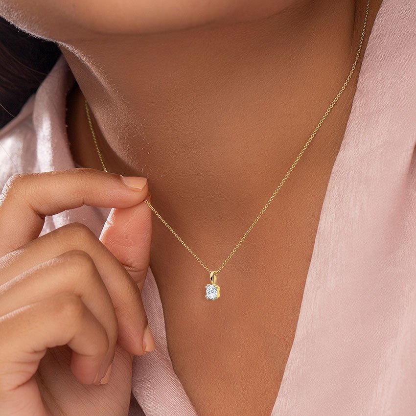 Elegant and timeless solitaire pendant necklace featuring a brilliant round cut white stone set in a secure prong setting. Crafted with gold plated finish, this minimalist design is perfect for daily wear, office wear, parties and gifting. A classic jewel