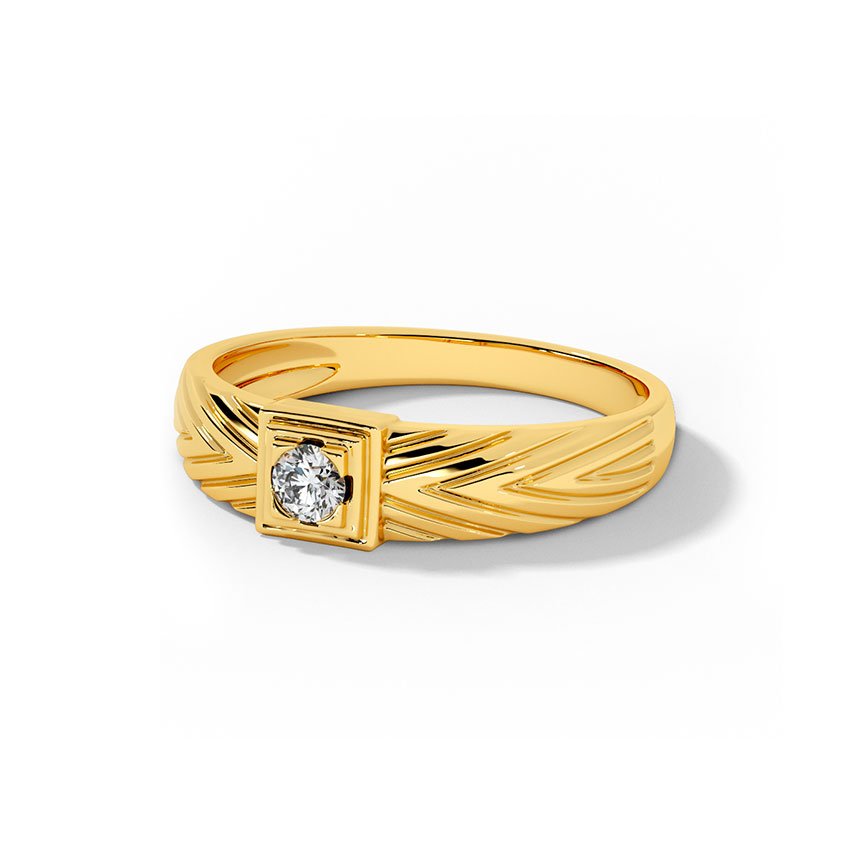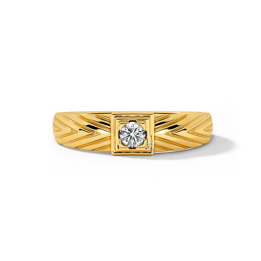 Premium yellow gold ring featuring a bold square top design with a sparkling solitaire diamond at the center.