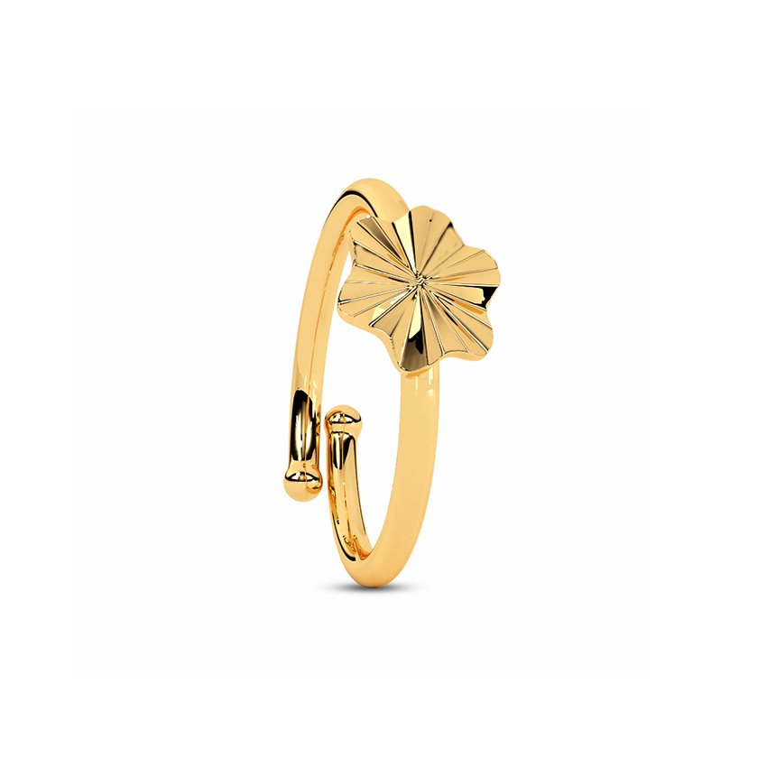 Beautiful yellow gold ring featuring a stylish floral design with fine detailing and high-polish finish.