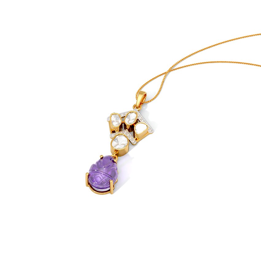Beautiful Purple crystal designer pendant necklace featuring intricate leaf pattern design with sparkling white stones. Perfect for party wear, wedding functions, festive occasions and gifting. Lightweight and elegant design enhances your traditional as w
