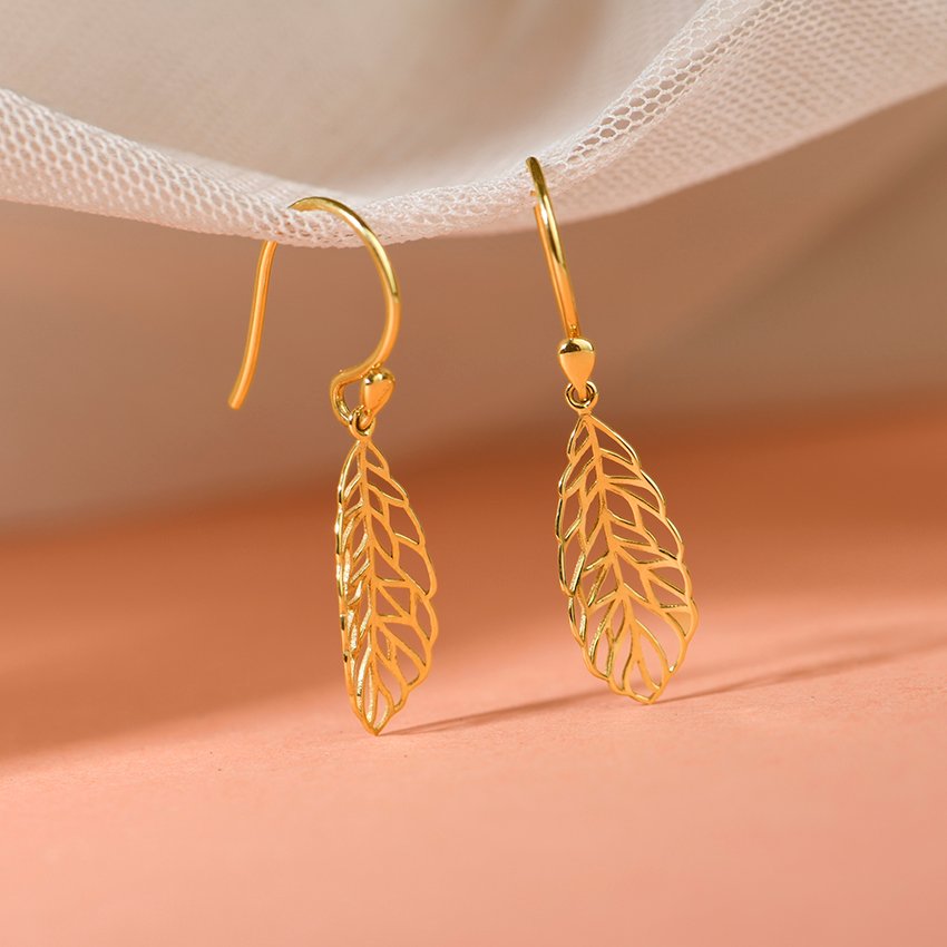 CaratLane 18 KT Yellow Gold Classic Leaves Diamond Stud Earrings For Women