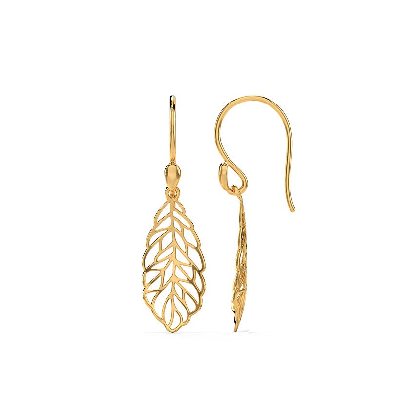 CaratLane 18 KT Yellow Gold Classic Leaves Diamond Stud Earrings For Women